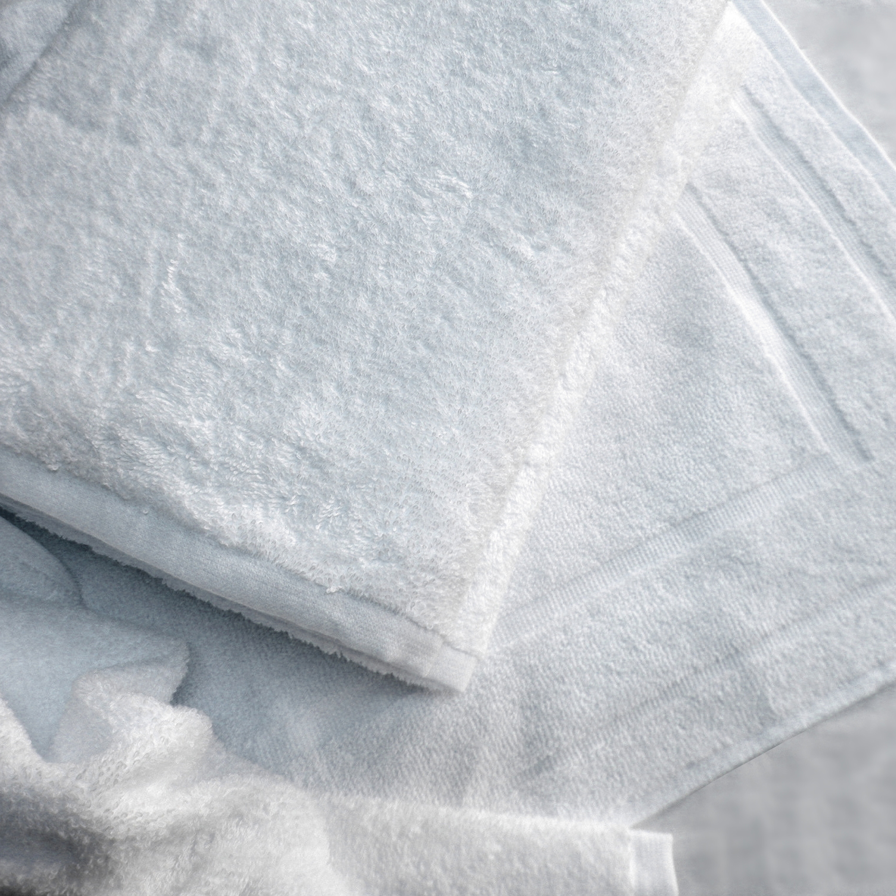 Uni - Zwirnfrottier mit Flachborte, Doppelnaht Längssaum, in 3 Farben.