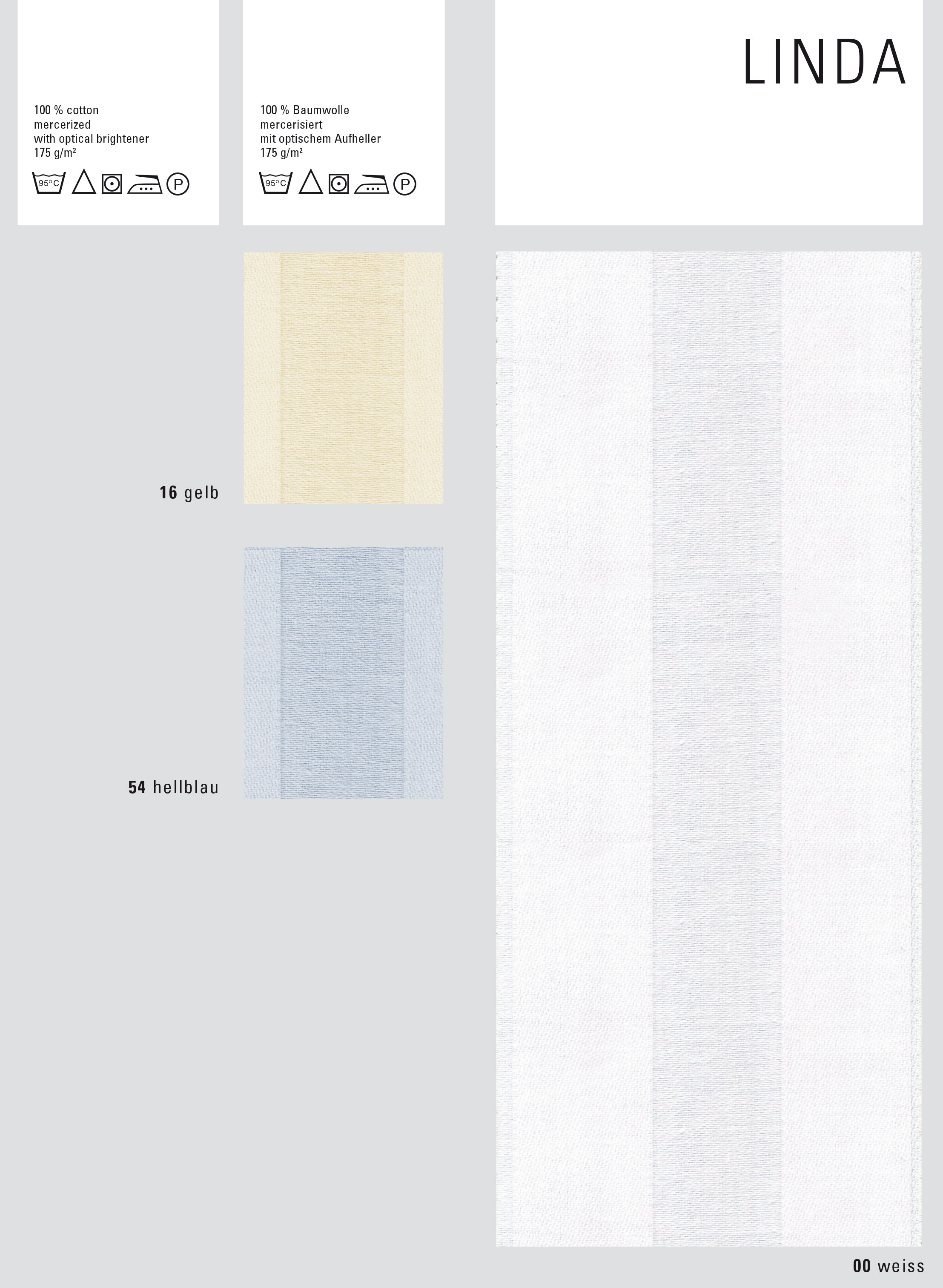 Damast, Streifsatin 25 mm, Baumwolle, weiß bzw. stückgefärbt, Indanthrenfarben, koch- und chlorecht, mit optischem Aufheller vorbehandelt, Konfektion mit Hotelverschluss + Bogenabnäher, in 3 Farben, Oeko-Tex Standard 100, ca.-Maße nach der Wäsche.