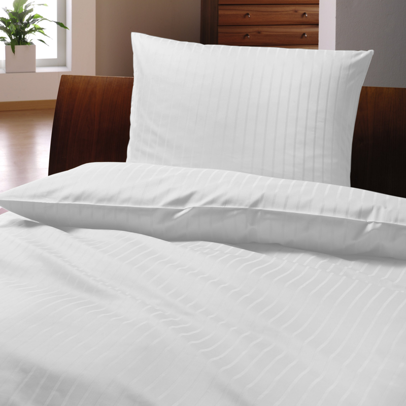 Hochwertiger Damast, Streifsatin 6/ 24 mm, Konfektion mit Hotelverschluss, weiß bzw. stückgefärbt, Indanthren-Farben, mit optischen Aufheller vorbehandelt, koch- u. chlorecht, super gekämmte Baumwolle, in 2 Farben, ca.-Maße nach der Wäsche.