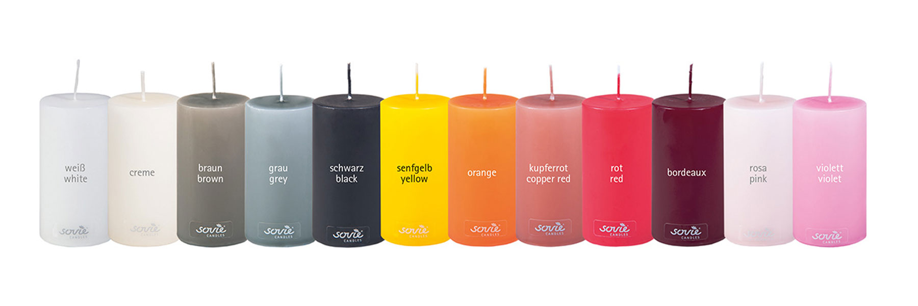 Unsere Stumpenkerzen gibt es in vielen verschiedenen Farbvarianten - ob maritimes Blau, edles Weiss oder temperamentvolles Rot - Sie haben die Qual der Wahl, welchen Stil Sie für Ihr Tischdesign bevorzugen. Stumpenkerzen für die Tischgestaltung lassen sich mit passenden Blumen und sonstigen Accessoires im gleichen Farbschema zu einem einzigartigen Table Top Design gestalten, welches Sie immer wieder saisonal und dem Anlass entsprechend umgestalten können. Die lange Haltbarkeit der Stumpenkerzen ist ein weiterer Vorteil dieses Premium-Produktes, das aus hochwertigen Paraffinen in sechs verschiedenen Größen hergestellt wird.