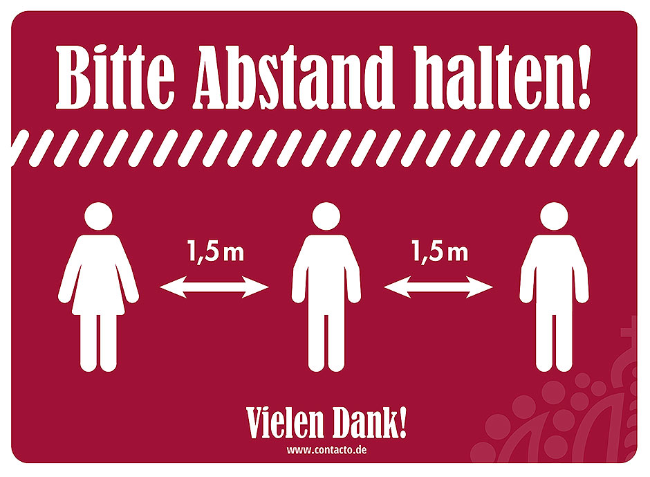 Aufforderung 1,5 Meter Abstand zur nächsten Person