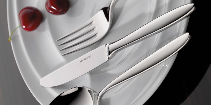 HEPP hat mit der Kollektion AURA ein Besteckmodell mit sinnlicher Ausstrahlung im Angebot. Die Besteckserie HEPP - AURA steht für Eleganz und gefühlsbetonte Porzellanformen. Die weichen Linien formen ein handschmeichelndes Besteck mit einzigartiger Haptik. Das ganz polierte Edelstahl Besteck AURA von HEPP wird aus rostfreiem Edelstahl 18/ 10 gefertigt ist. Die Messer gibt es als Hohlheftmesser mit eingesetzter Klinge oder alternativ als Massivmesser aus Chromstahl. Das Besteckmodell AURA von HEPP umfasst 20 elegante Besteckartikel aus rostfreiem Edelstahl.
