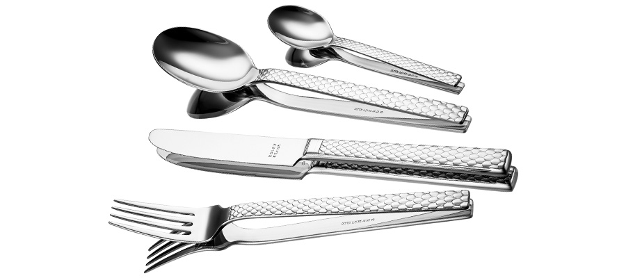 NALA von SOLEX ist das Bersteckmodell für alle, die Exklusivität suchen. Die perlenförmige, haptisch ansprechende Oberfläche mit ihren schwungvollen Kreisen und Ovalen ist unaufdringlich und spiegelt die Lichtstimmung und das Ambiente des Raumes wider. Ein Design, das an höchste Juwelierkunst erinnert und damit so unverwechselbar wie der Gastgeber ist.