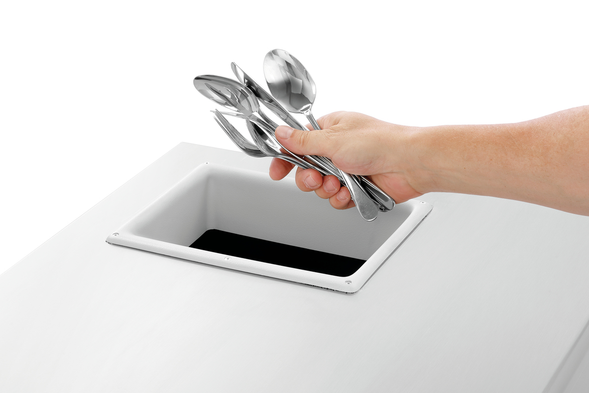 Besteck auf Hochglanz poliert Bis zu 1.500 Besteckteile pro Stunde. Dank der integrierten UV-Lampe und der HACCP-konformen Betriebstemperatur sind die Besteckteile hygienisch frisch desinfiziert.