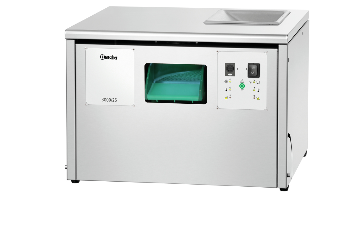 Störender Lärm aus der Küche muss nicht sein. Die Lärmschutzhaube reduziert die störende Geräuschkulisse, wenn Besteck mit der Besteckpoliermaschine 3000/25 auf Hochglanz gebracht wird.