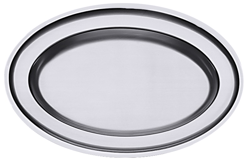 Buffet-Platte, oval, gebördelter Rand, Edelstahl, 42 x 28,5 x 2,5 cm