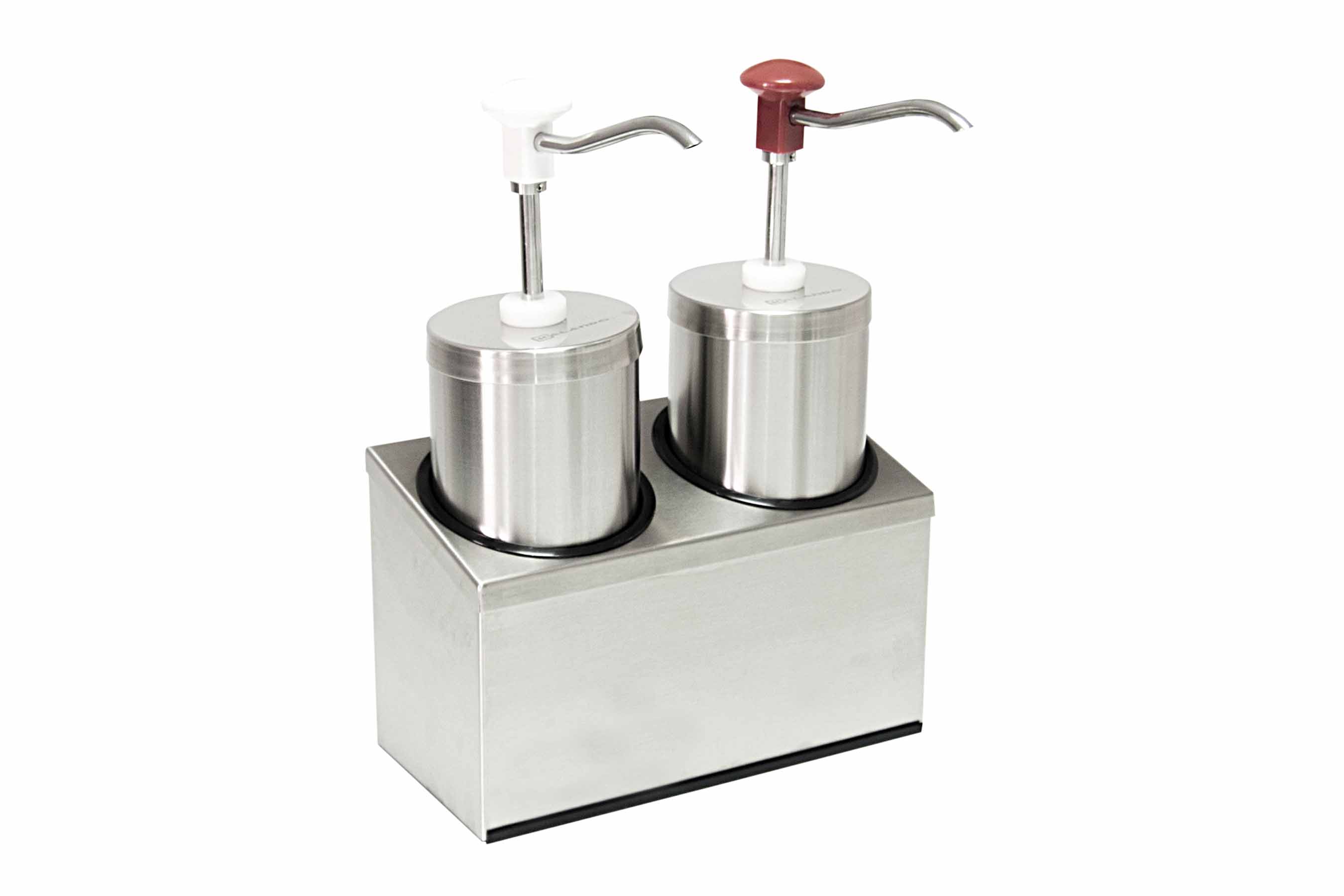 Produktinformationen "Dosierspender rund, 2-fach weiss/ rot, Inh. 2 x 2,25 ltr., 294 x 147 x 378 mm"