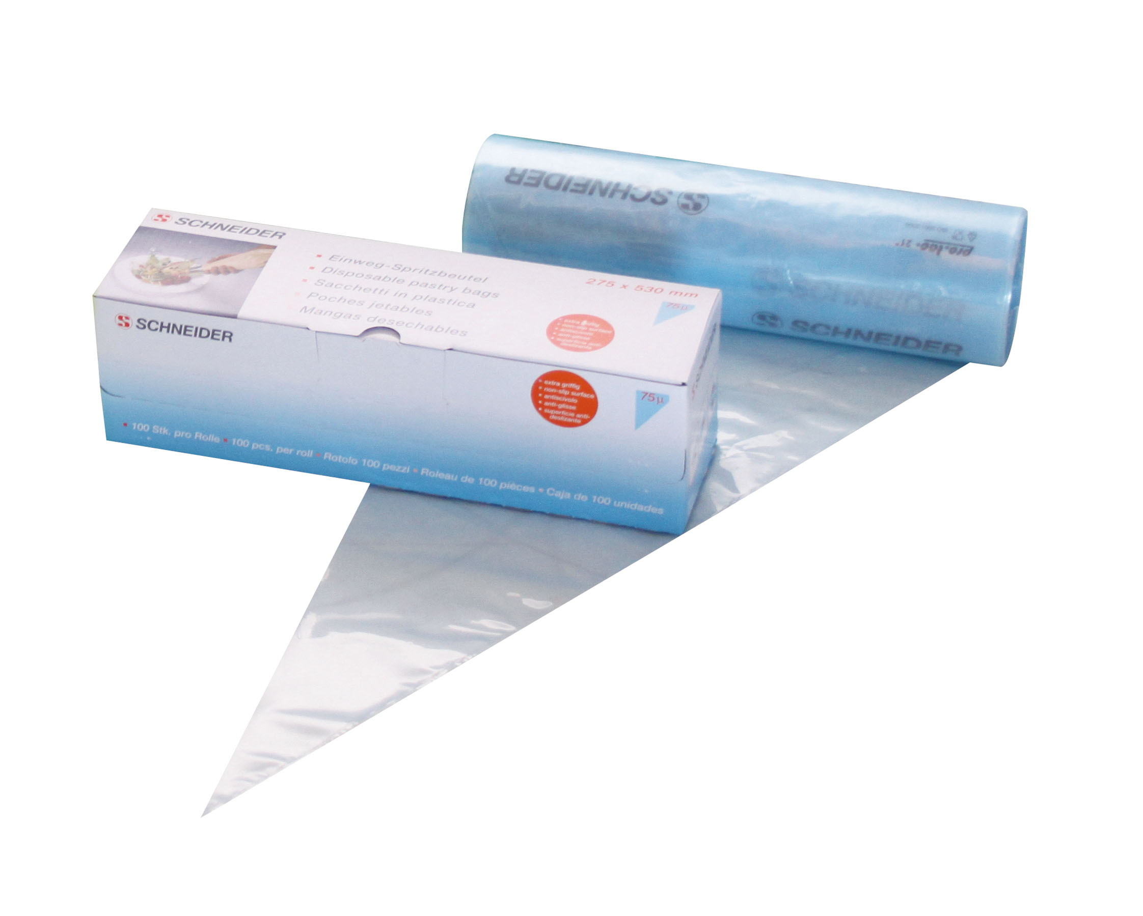 Einweg-Spritzbeutel, Rolle a 100 St., transparenter PE, I: 3,5 ltr., D: 17,5 cm, L:55 cm