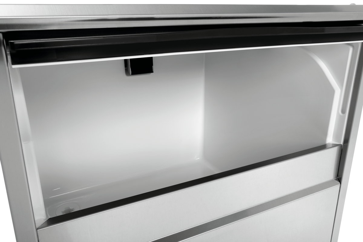 Der Eisbehälter zur Eismaschine 1500 hat ein Fassungsvermögen von 1,5 Litern und ist mit einem praktischen Henkel zum einfachen Entnehmen und Einsetzen ausgestattet.