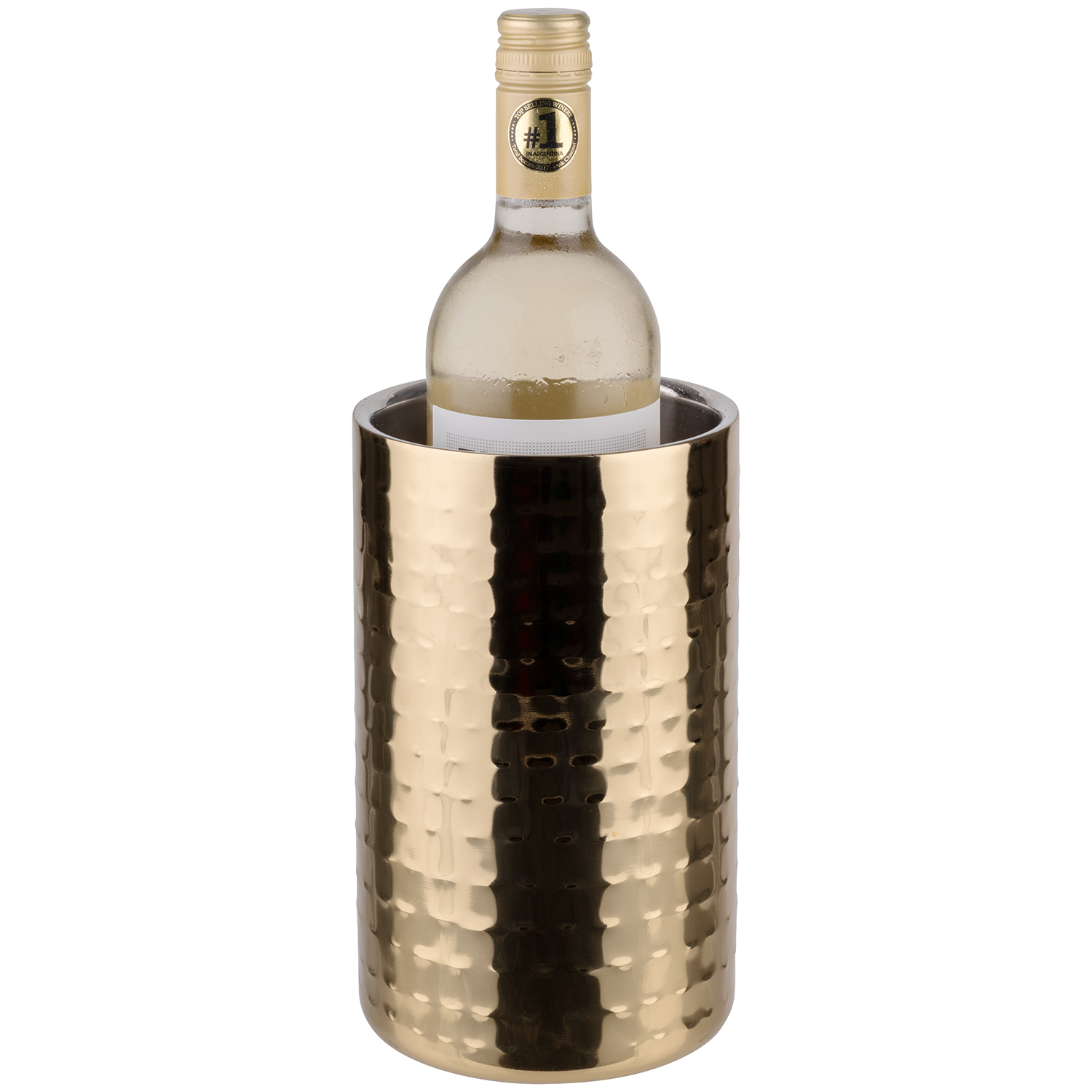 Flaschenkühler -GOLD- außen Ø 12 cm, H: 20 cm Edelstahl, außen Goldoptik außen Hammerschlag Optik innen Ø 10 cm, doppelwandig M1 = EdelstahlE11 = nicht spülmaschinengeeignet
