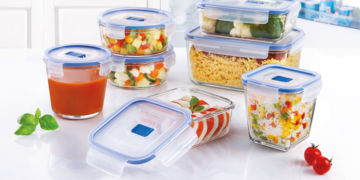 Vorratsdosen PURE BOX ACTIVE von Luminarc aus gehärteten Glas mit PP- Ventildeckel