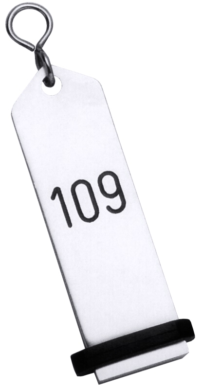 Produktinformationen "Hotelschlüsselanhänger, Leichtmetall, silberfarben, B: 3 cm, H: 10 cm"