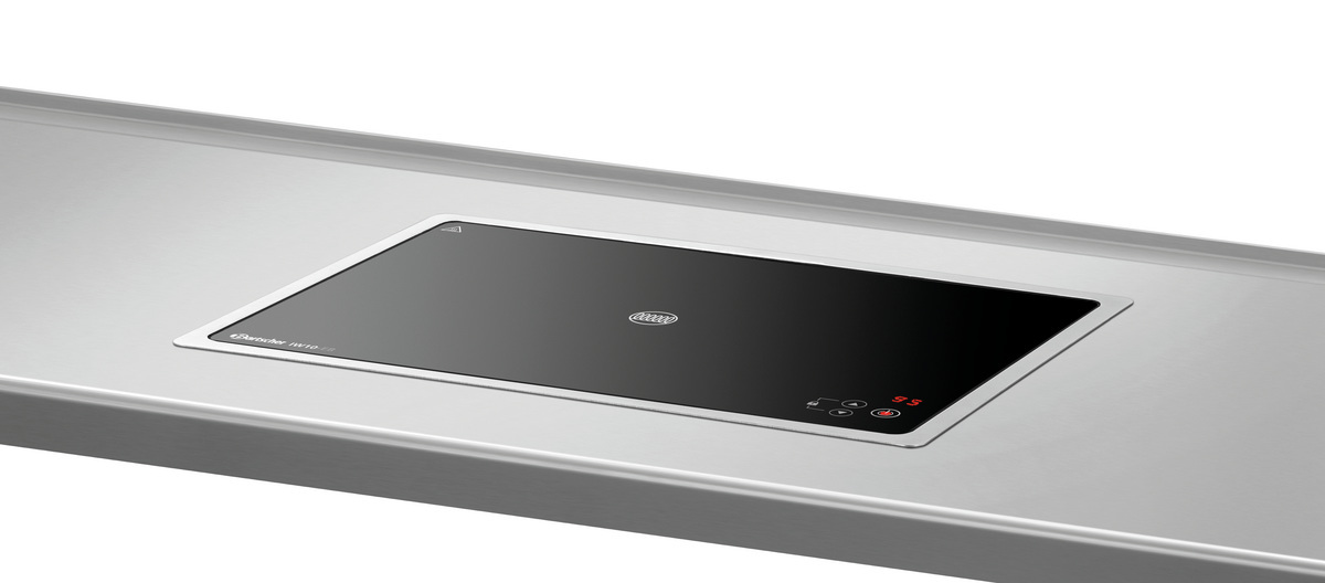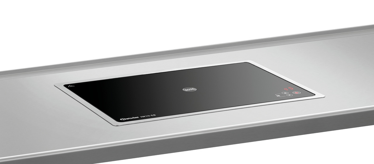 Mit dem „unsichtbaren“ Induktionswarmhaltesystem ist die Arbeitsplatte wahlweise als Warmhaltestelle oder Arbeitsfläche nutzbar. Verbaut unter einer Arbeitsplatte ermöglicht die beeindruckende Technik, dass ein Chafing Dish auf bis zu 100 °C erwärmt wird während die Arbeitsplatten-Temperatur maximal 35 °C erreicht.