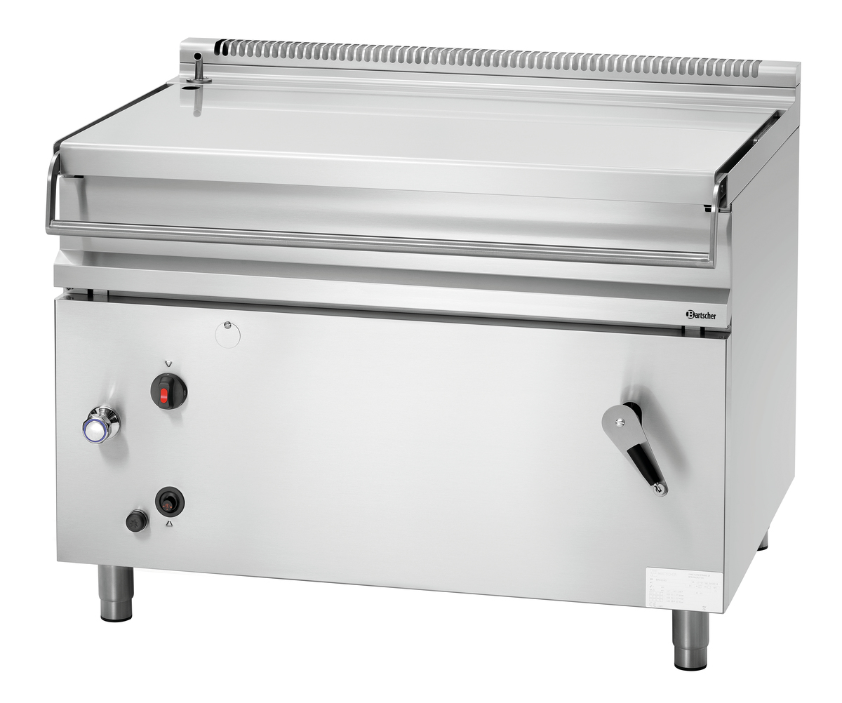 Kippbratpfanne der Serie 900 in bekannter hochwertiger Edelstahl-Ausführung. Der Tiegel ist vollständig aus Edelstahl und fasst bis zu 70 Liter. Das Elektro-Modell mit elektromotorischer Kippvorrichtung verfügt über einen Wassereinlaufhahn und ist ausgelegt für einen Kalt- oder Warmwasseranschluss.