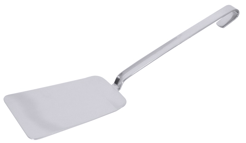 Produktinformationen "Kippbratpfannenschaufel, kurz, Edelstahl, 18 x 14 cm, Stiellänge: 28 cm"