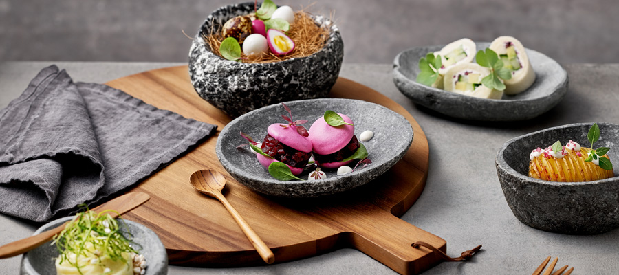 Kombinieren Sie verschiedene Elemente und Materialien miteinander und schaffen Sie so ihren ganz individuellen Mix aus Geschirr, Accessoires und Artikeln, mit denen Sie ihren Tischen und Gerichten eine individuelle Note geben.
