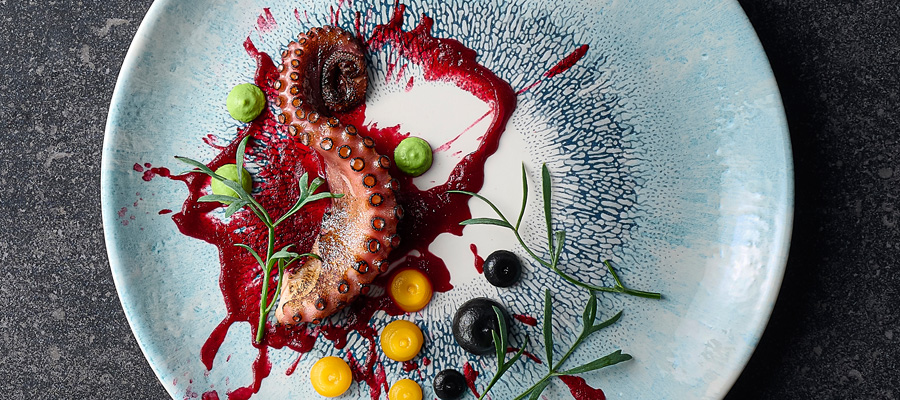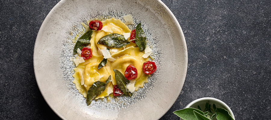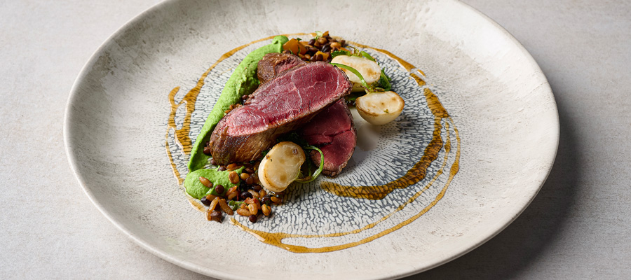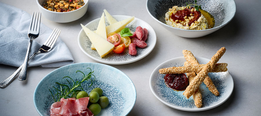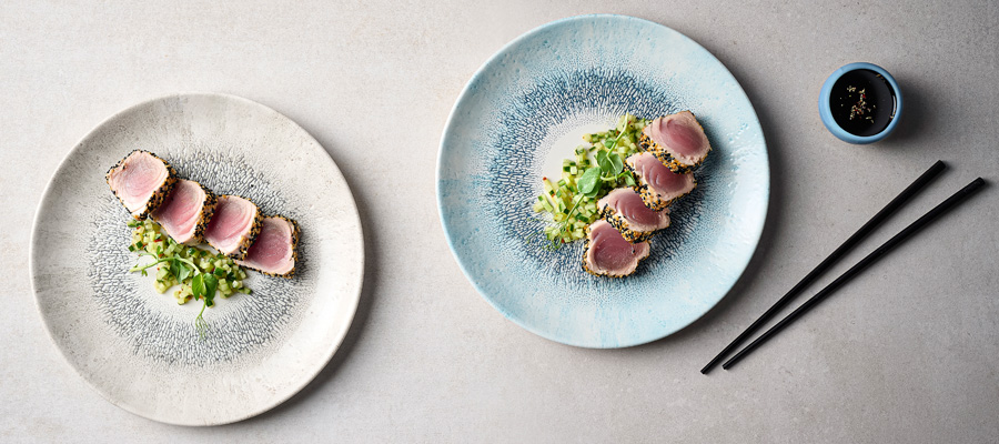 FUSION | Studio Prints v. CHURCHILL, zeigt einen strukturierten Randeffekt, inspiriert durch die Verschmelzung multitonaler reaktiver Glasuren. Dieses radiale und ausdrucksstarke Design verbindet Farbe und Textur mit einem modernen weißen Zentrum und eignet sich ideal für die Präsentation hochwertiger Lebensmittel. Studio Prints Fusion ist mit einer Unterglasurdekoration versehen und integriert sich perfekt in alle Arten der Innenraumgestaltung im Gastgewerbe. In der Fusion-Kollektion werden zwei Farbkombinationen vorgestellt, Agate Grey und Aquamarine, die sich perfekt mit anderen Studio Prints-Designs wie z.B. Raku oder Stone kombinieren lassen, um ein modernes und stilvolles Tischambiente zu schaffen.