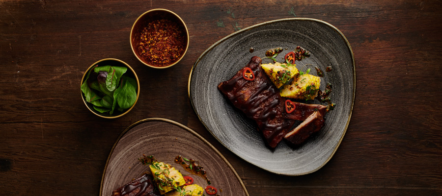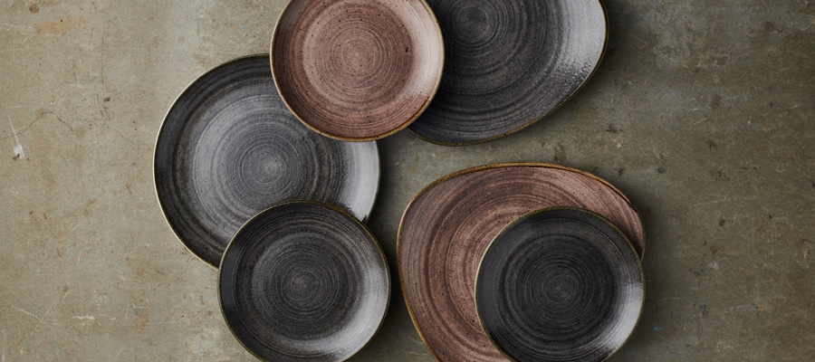 Die Stonecast Kollektionen werden jetzt mit Stonecast Raw um eine rustikal erdige Serie erweitert, die mit der halb matten Vellum-Glasur verarbeitet wurde. Stonecast Raw besitzt eine gedämpfte und taktile Haptik mit warmen, organischen Tönen, die von natürlichen Materialien und Effekten der Wischtechnik inspiriert sind. Dekoriert mit Unterglasur bietet Raw ein von Hand aufgetragenes, rustikales Kantenband und eine haltbare, halbmatte Glasur, die so gestaltet ist, dass sie der hohen Beanspruchung der Gastronomie standhält. Dier erste Launch von Stonecast Raw umfasst 6 Farben, Black, Brown, Green, Grey, Teal und Terracotta, die in runden, dreieckigen und rechteckigen Formen erhältlich sind.