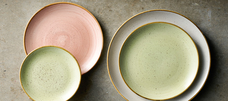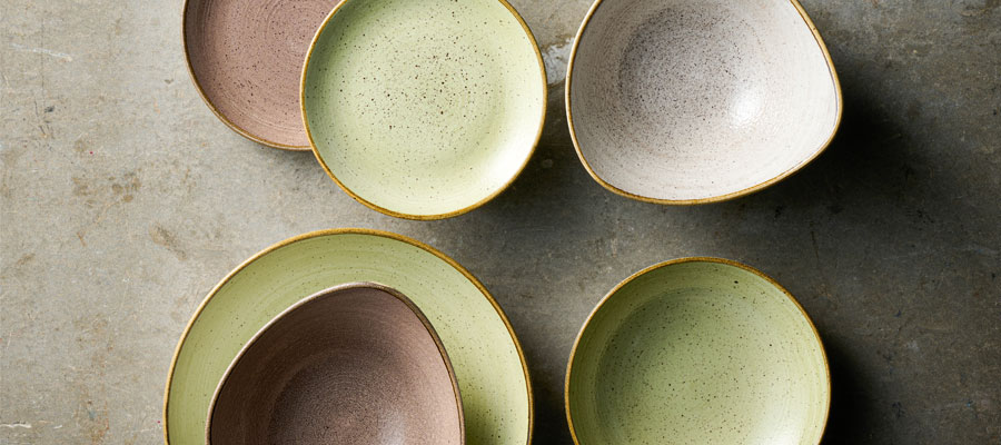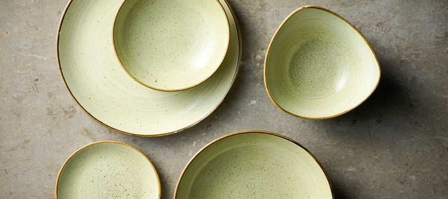 Die Stonecast Kollektionen werden jetzt mit Stonecast Raw um eine rustikal erdige Serie erweitert, die mit der halb matten Vellum-Glasur verarbeitet wurde. Stonecast Raw besitzt eine gedämpfte und taktile Haptik mit warmen, organischen Tönen, die von natürlichen Materialien und Effekten der Wischtechnik inspiriert sind. Dekoriert mit Unterglasur bietet Raw ein von Hand aufgetragenes, rustikales Kantenband und eine haltbare, halbmatte Glasur, die so gestaltet ist, dass sie der hohen Beanspruchung der Gastronomie standhält. Dier erste Launch von Stonecast Raw umfasst 6 Farben, Black, Brown, Green, Grey, Teal und Terracotta, die in runden, dreieckigen und rechteckigen Formen erhältlich sind.