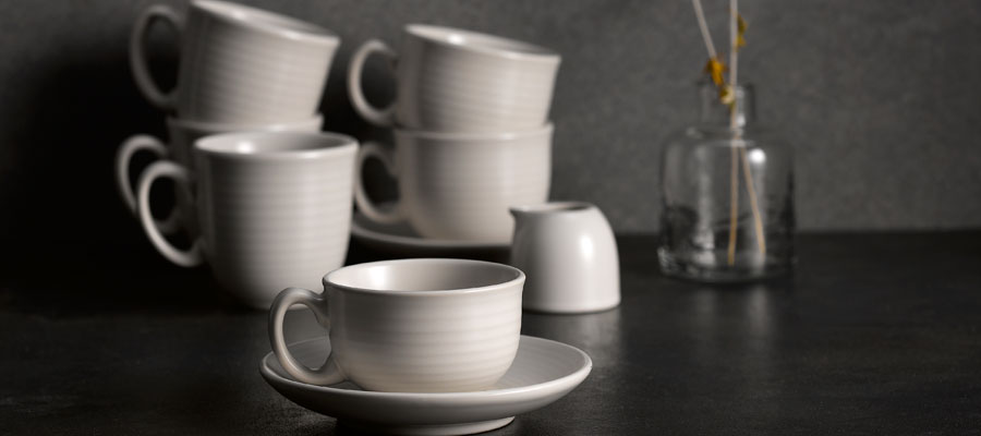 Das von Hand gefertigte Dudson Evo ist der Allroundspieler unter den Kollektionen. Alle Teile und Farben lassen sich, je nach Anforderung, individuell miteinander kombinieren. Evo von Dudson besitzt das Design und die Haptik von handgemachtem Geschirr und der wohnliche Charme verleiht jedem gedeckten Tisch einen Hauch von Wärme. Die Form und Ästhetik drückt sich in den drei matten Glasurfarben Jet, Pearl und Azure aus. Die vollglasierten Geschirrteile werden von Hand getaucht. Die reaktiven Farbgebungen machen jedes Stück zu einem Unikat.