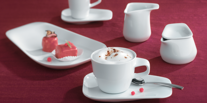 ELIXYR bedeutet Ungewöhnliches und Vertrautes, Symmetrie und Asymmetrie, geometrische und organische Elemente - ELIXYR eine exklusive Kombination von KAHLA, die in außergewöhnlicher Emotionalität viel Harmonie und Wohlgefühl erzeugt. Die fließenden Formen von KAHLA ELIXYR lassen Porzellan und Speisen zu einer Einheit verschmelzen. Alle Porzellanartikel von KAHLA ELIXYR sind zum Anfassen schön:Die trapezförmigen Platten, Schalen und Teller, aus denen jeweils ein Griffelement herauswächst, helfen beim Tragen und Halten. Der ergonomisch geschwungene Henkel der Tassen bietet angenehmen Platz für den Daumen. Das einzigartige KAHLA - Design ELIXYR ist eine erfrischende Zutat für experimentierfreudige Genießer, repräsentativ und mit einem Hauch von Luxus. Mit der Porzellanform ELIXYR von KAHLA ist eine Feinschmecker-Atmosphäre daher garantiert. Das Porzellan ELIXYR weist dabei eine gute Kantenschlagfestigkeit und Härte auf, besitzt eine widerstandsfähigen Glasur, ist spülmaschinen- und mikrowellenfest. Das hochwertige KAHLA - Porzellan ELIXYR empfiehlt sich für die Hotellerie & Gastronomie, für anspruchsvolle Cafés & Konditoreien und auch für das Event-Catering.