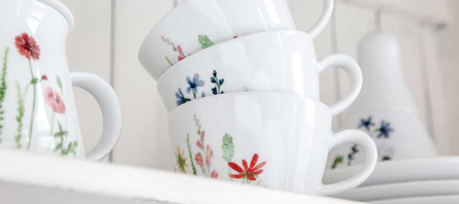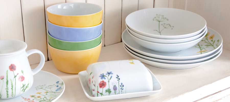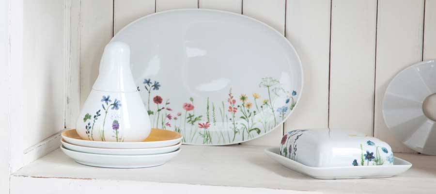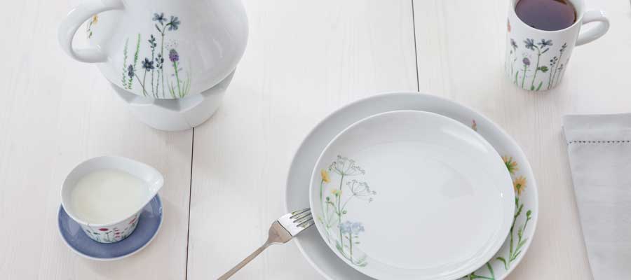 Eine fröhliche Szenerie aus floralen Motiven kombiniert mit freundlichen Aquarellfarben. Das ist FIVE SENSES von KAHLA mit dem Dekor WILDBLUME. Die frischen, farbenfrohen Wildpflanzen sind ganz der Natur nachempfunden.