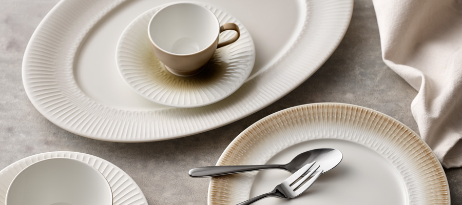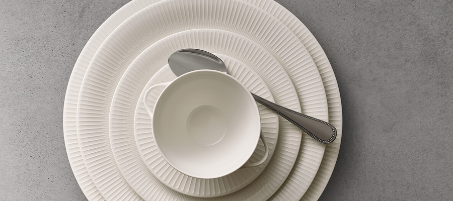 VIBES von Schönwald bringt neue Lebendigkeit auf den Tisch. Das strahlenförmige Relief fängt das Licht ein und unterstützt das Warmweiß der Kollektion aus filigranem Noble China. Dabei erzeugen die versetzten Linien einen modern interpretierten Retro-Look im Stil der Sixties. Oberflächen mit einer haptischen Gestaltung sind ein wichtiges Designelement im Interiorbereich. Das Relief von VIBES spielt mit zarten Stäbchen und lenkt den Blick auf das Wesentliche - die Foodpräsentation. Dabei schafft das Relief die Balance zwischen Tradition und Moderne und alle VIBES-Artikel passen in unterschiedliche Konzepte. Bitte beachten Sie, dass es sich bei allen Artikeln um sog. Dekorartikel handelt, d.h. diese Artikel werden auftragsbezogen & individuell für Sie produziert. Im Rahmen eines solchen Dekorauftrages können Minder- oder Mehrmengen von -/+ 10% der bestellten Menge auftreten; mit Gutschrift bzw. Nachbelastung unserseits.