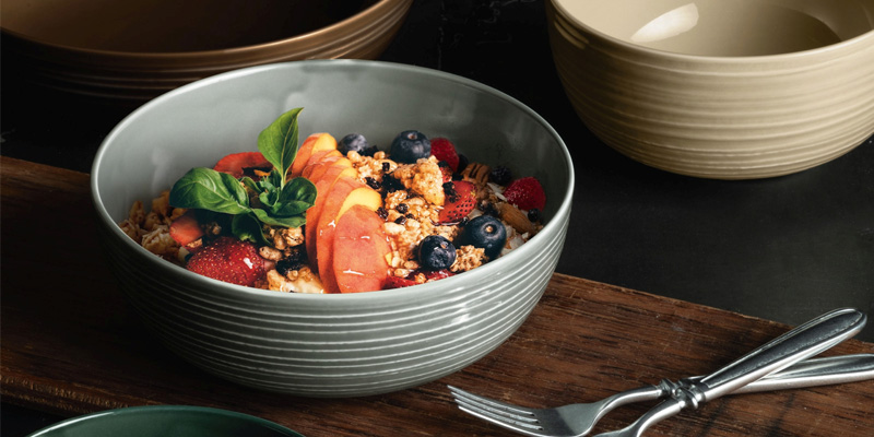 Lust auf was Neues? Dann ist unsere Serie TERRA genau das Richtige für dich! Aus Feuer, Luft, Wasser und Erde hergestellt – sinnbildlich ist die Porzellanserie TERRA eine Allegorie unseres Planeten. Ob in weiß oder den vier Glasuren Sandbeige, Perlgrau, Erdbraun und Moosgrün – Vielfalt ohne Ende! Das Finish der Porzellanserie TERRA mutet in jedem Fall wie jene CRAFTSMANSHIP an, bei der der Betrachter unwillkürlich die Unregelmäßigkeiten sucht, die jedes unikative Werk in sich trägt. So wird eine besondere Tasse Kaffee zu einem außergewöhnlichen Geschmackserlebnis. Der Trend aus der Schale – auch bei TERRA gibt es unsere Foodbowls in vielen verschiedenen Größen und Farben. Für eine vielfältig-kulinarische Themen-Inszenierungen! Das Auge isst ja schließlich mit. Beim Präsentieren des Essens gibt es keinerlei Einschränkungen – egal ob Hauptgericht, Salate oder Desserts. Foodbowls passen zu jedem Anlass und regen die Kreativität des Kochs beim Anrichten der Speisen an. Wie wäre es mit einem leckeren, gesunden Müsli zum Frühstück?