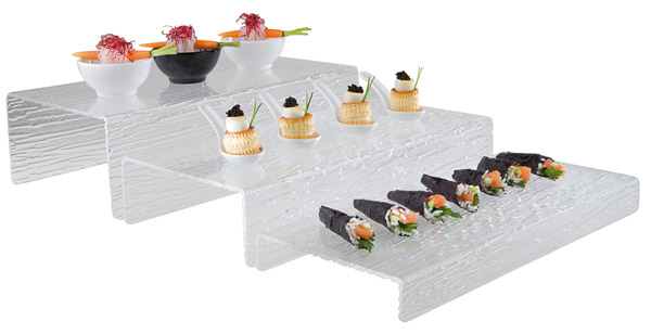 StufenDisplay40 x 20 cm, H: 8 cm Acrylglas mit Schieferstrukturstapelbar ideal für das BüfettA3 = Made in Germany S9 = Acryl E5 = stapelbar F13 = Farbe: Transparent