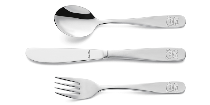 AMEFA Teddy ein fröhliches Kinderbesteck für 3 - 5 jährige Kinder.