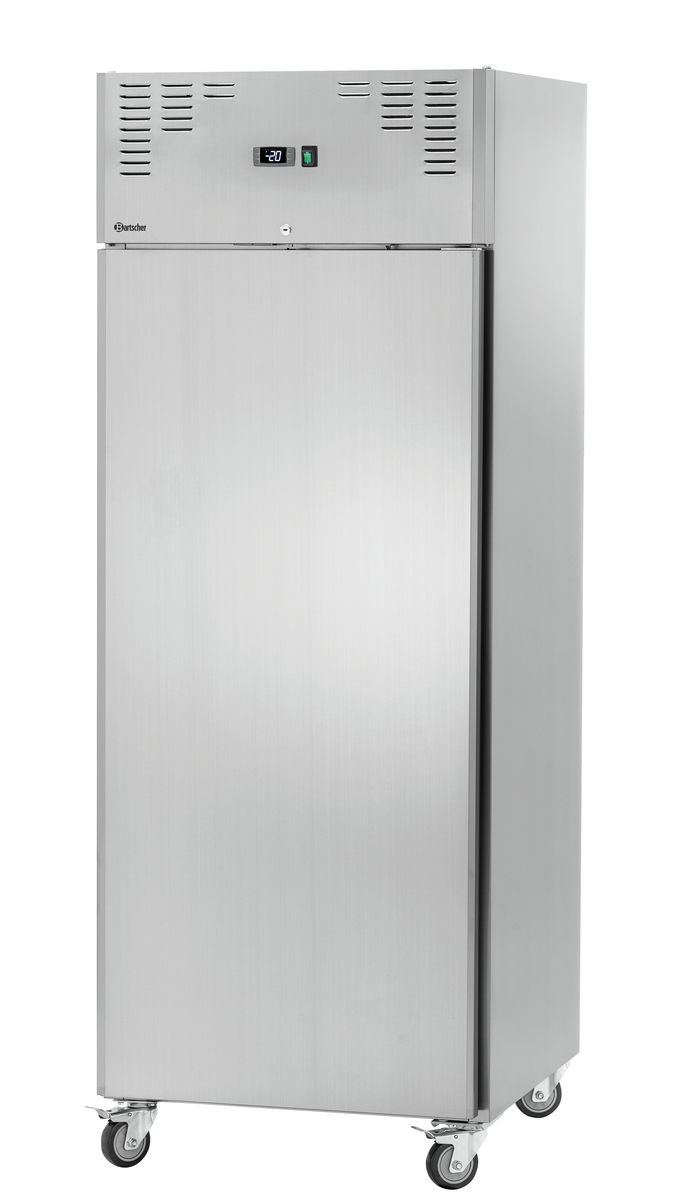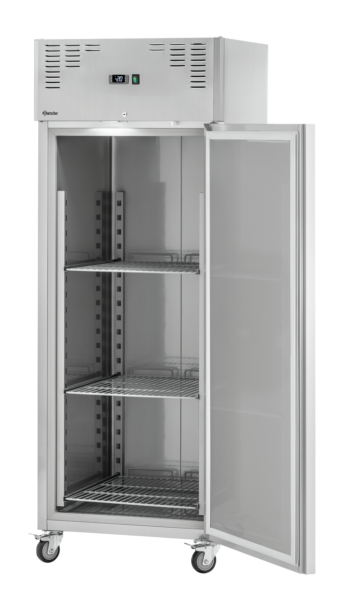 Darf es etwas mehr sein? Der doppeltürige Tiefkühlschrank bietet mit seinen Zwischenablagen im 2/1 GN-Format ein besonders großes Platzangebot für die Lagerung von Tiefkühlwaren. Die leistungsstarke Umluftkühlung trotzt der Größe und sorgt im Innenraum für eine gleichmäßige und konstante Temperatur.