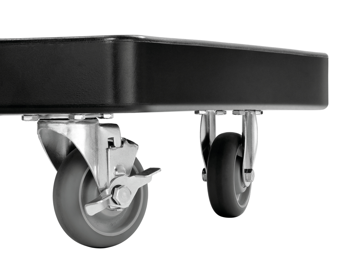 Abräumwagen aus rostfreiem Edelstahl mit Kunststoffrollen 4 Lenkrollen Ø 125 mm, davon 2 mit Feststeller Maße der Borde: 2 Borde 1000 x 600 mm max. Belastung je Bord: 80 kg Lichtes Maß zwischen den Borden: 481 mm Tragfähigkeit: 160 kg