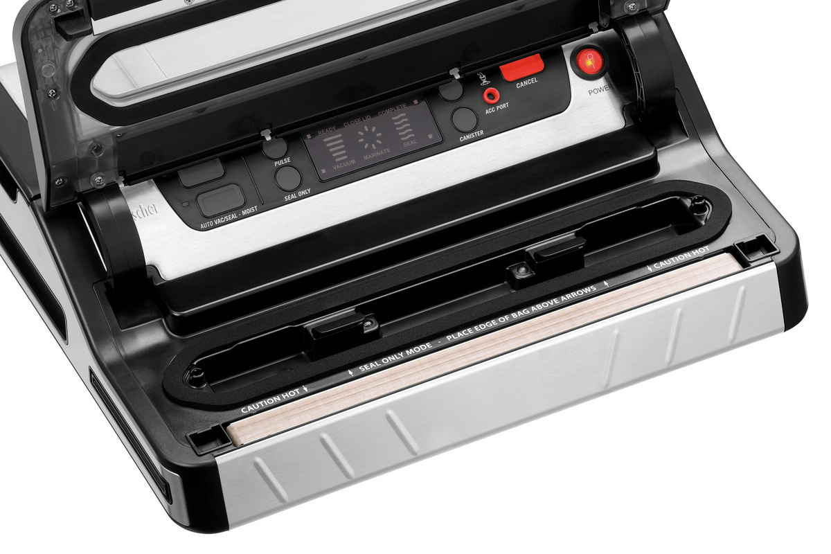 Vakuumieren, Marinieren und Versiegeln – Das Kammer-Vakuumiergerät mit 5 regulierbaren Intensitätsstufen bietet verschiedenste Möglichkeiten zur Lagerung und Vorbereitung von Speisen.